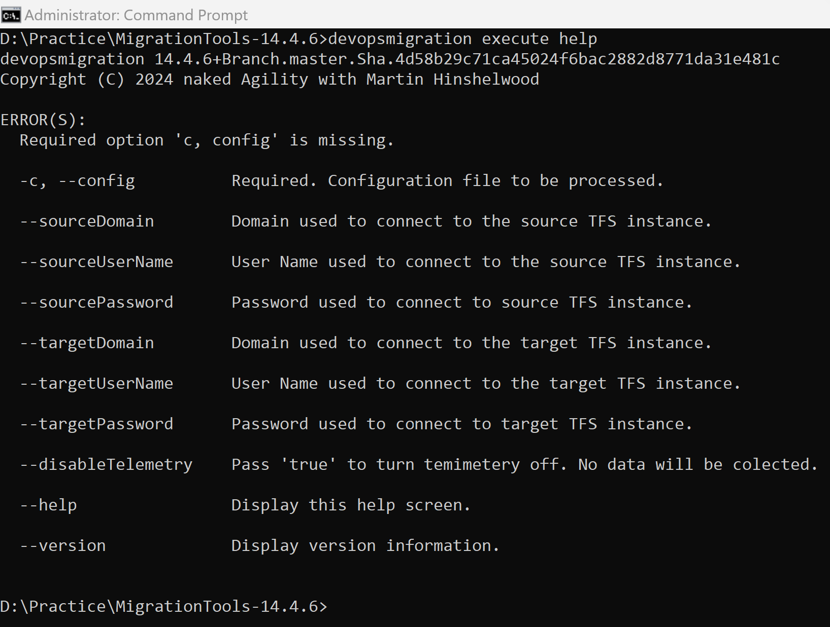 devopsmigration execute --config D:\Practice\MigrationTools-14.4.6\configuration.json