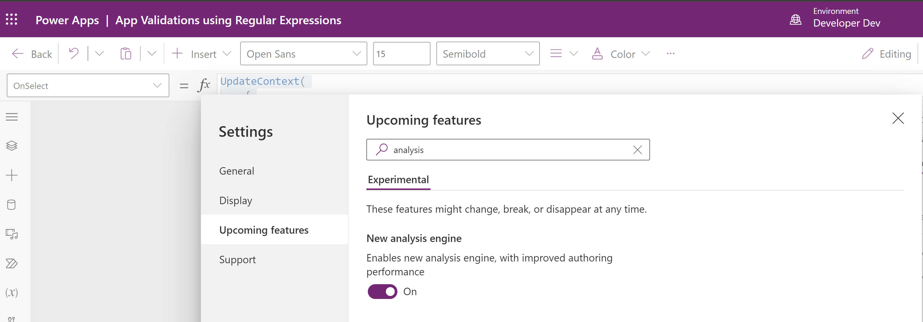 - Enable Settings > New analysis engine