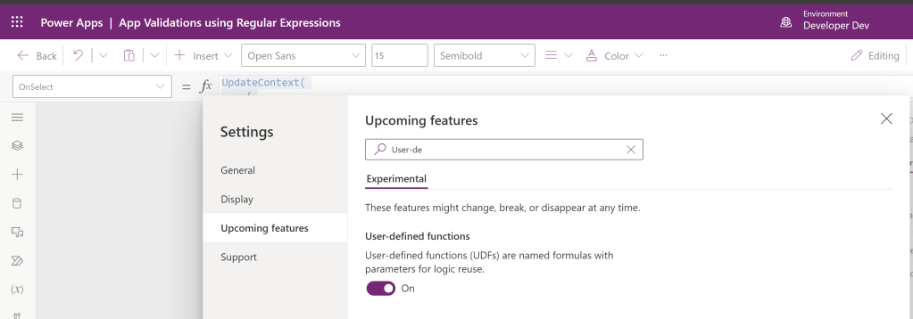 Since the ‘User Defined Functions (UDF)’ feature is still in preview, we need to enable the following settings to use it in our app.