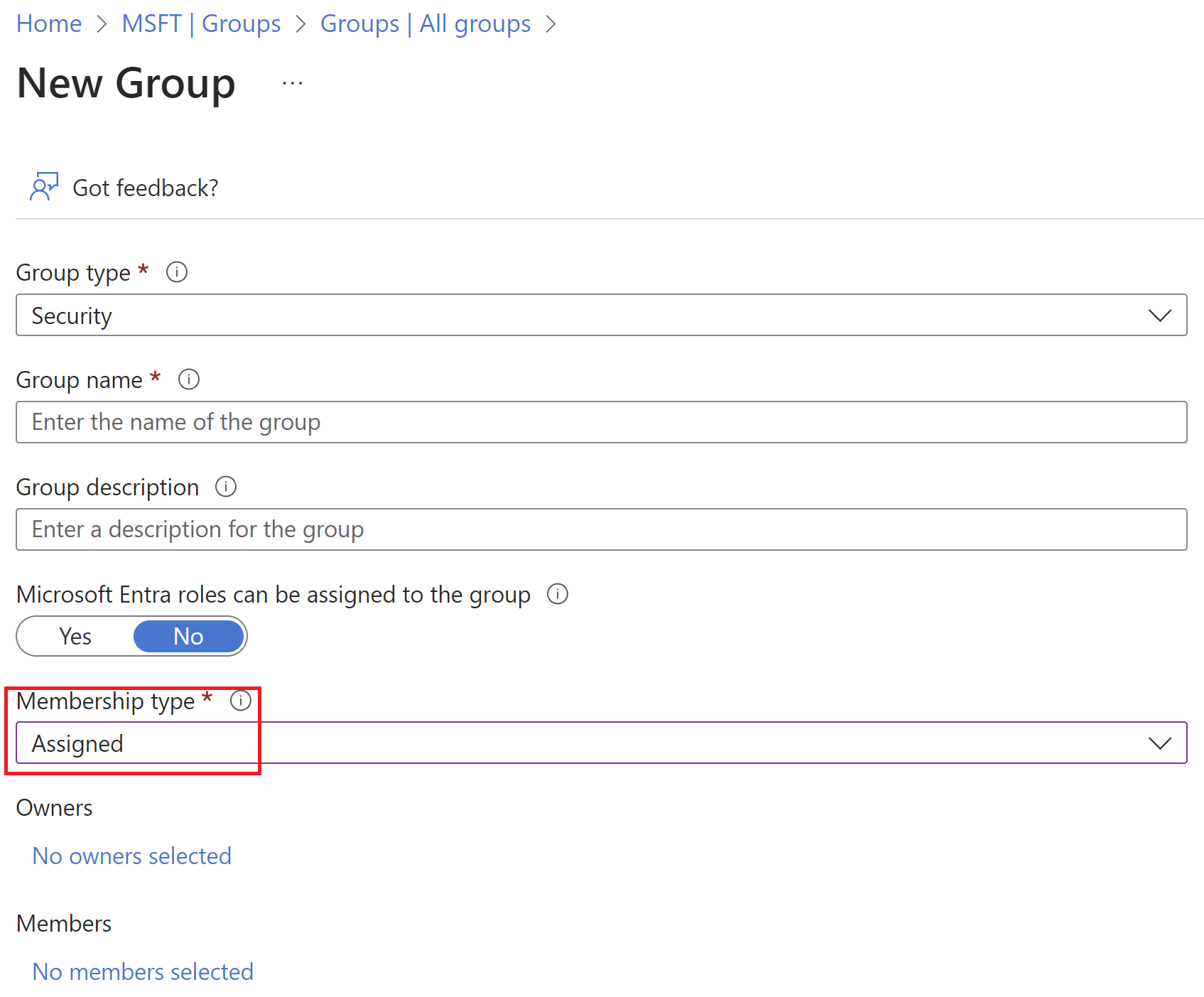 In Microsoft Entra ID (Formerly known as Azure Active Directory), Assigned groups allow you to add specific users as members of a group. Administrators have direct control over membership, enabling them to add or remove members as needed.