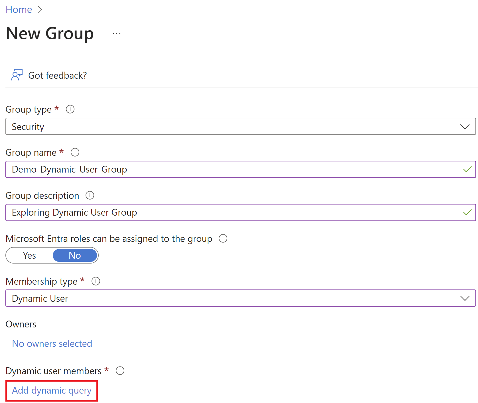 - Provide the Group name as the Demo-Dynamic-User-Group