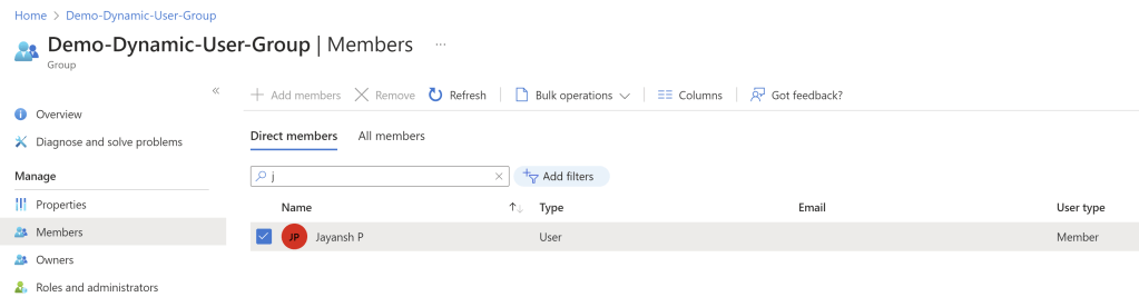 - Now navigate to the Demo-Dynamic-User-Group group and you would notice that user got added to the group automatically.