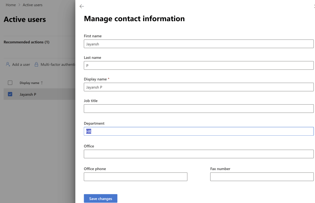 - To test the removal of a user scenario, let’s update the user’s department from ‘Sales’ to ‘HR’ and see if the user gets removed from the group.