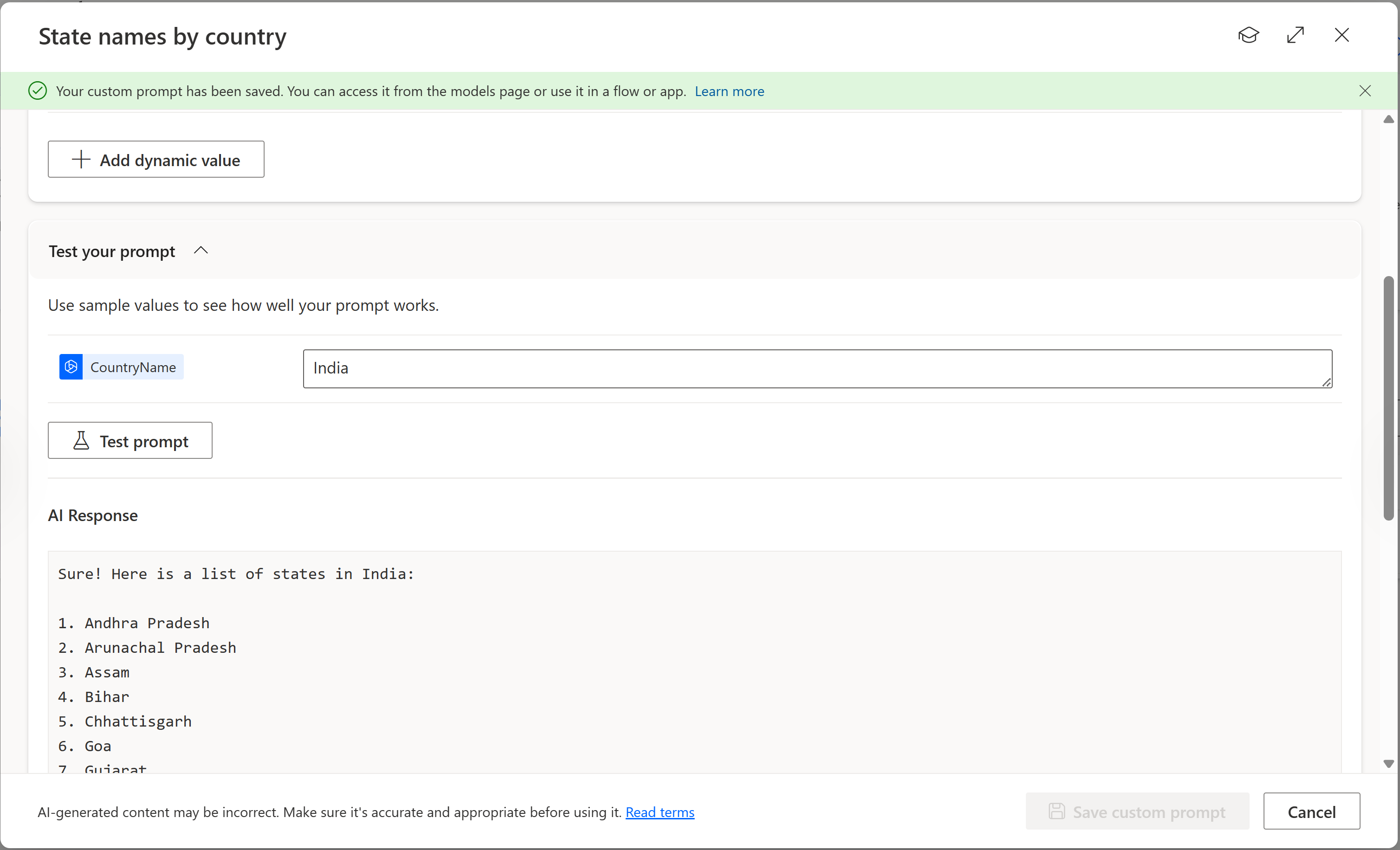 - Click on Save custom prompt