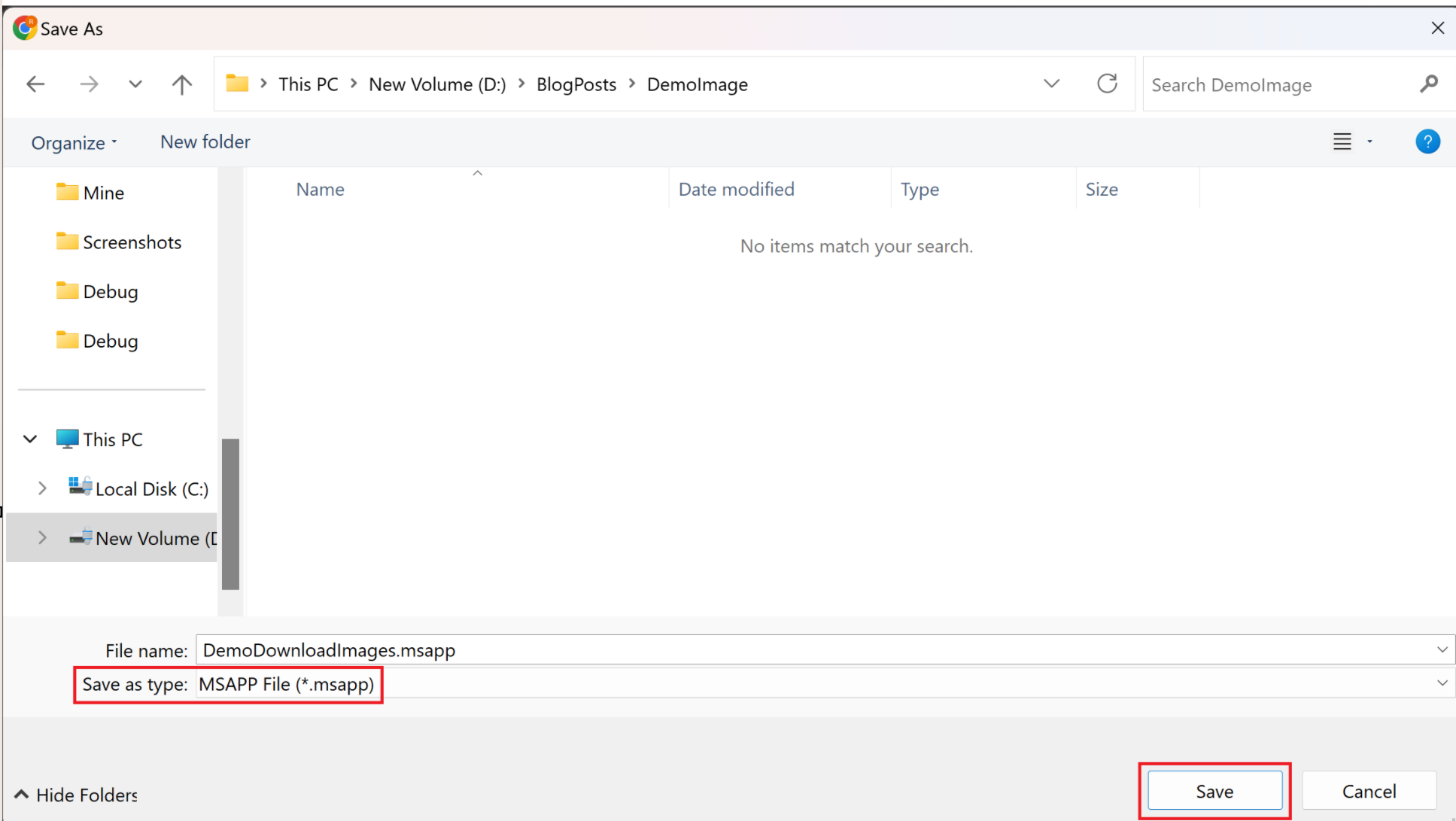 - Rename the DemoDownloadImages.msapp file to DemoDownloadImages.zip and extract the zip files as shown below.