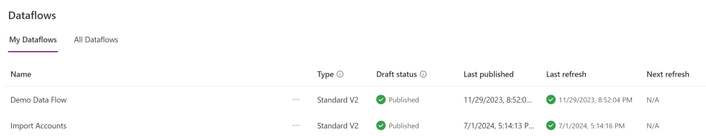 - Import the Excel file into Dataverse. I’ve used the Dataflow to complete the import.