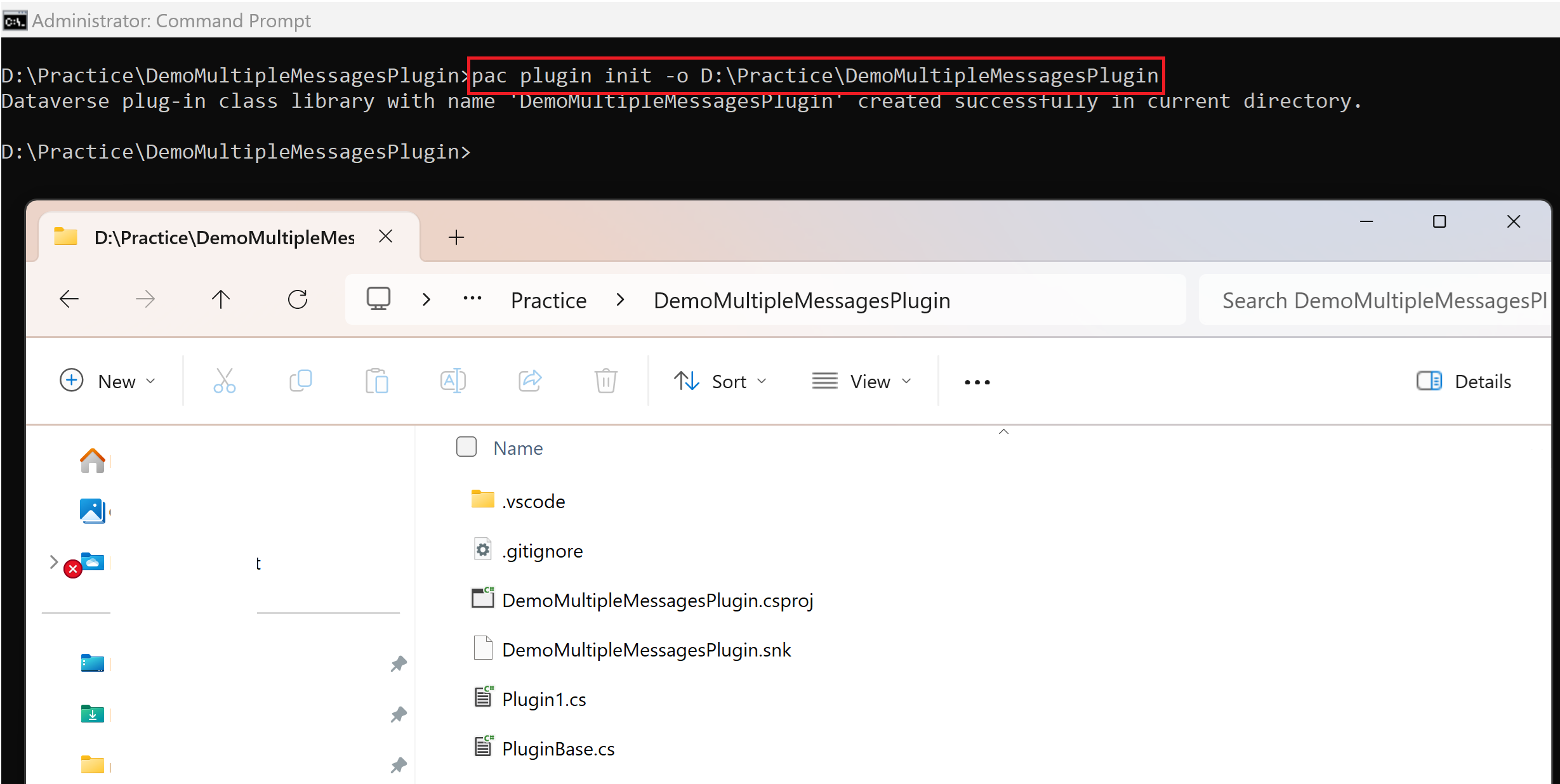 pac plugin init -o D:\Practice\DemoMultipleMessagesPlugin