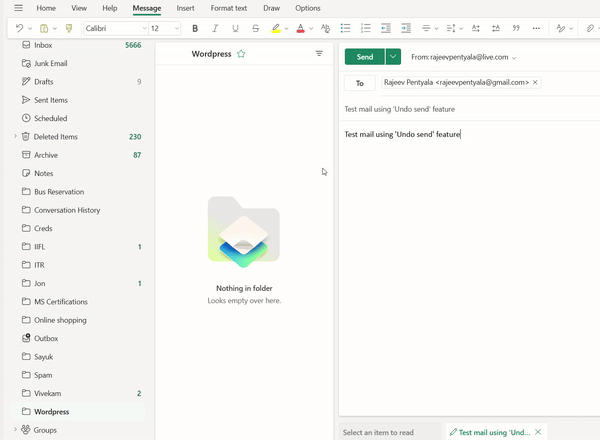 - When you hit the Send button, you’ll instantly see a sending notification at the bottom of Outlook with the option to Undo.