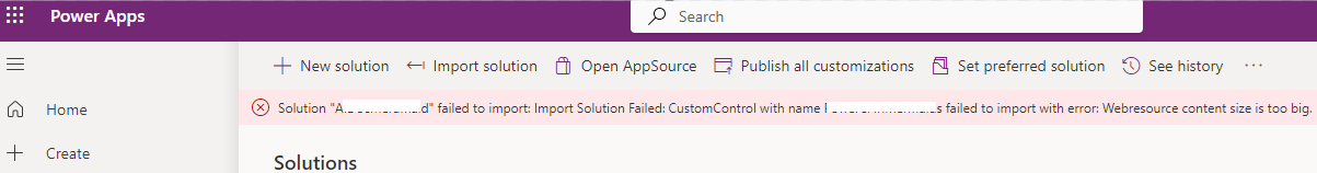 Regarding the current blog post, while trying to import a solution with a PCF control, I encountered the error: Import Solution Failed: Web resource content size is too big.