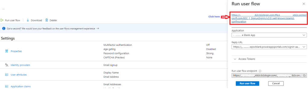 - Select Run user flow.