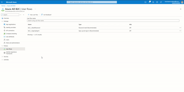 - Open the B2C_1_ResetPassword user flow, and repeat steps.