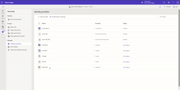 - In your Power Pages site, select Security > Identity providers.