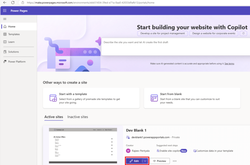 Ensure you have a Power Pages website set up before proceeding. If you already have one, let’s get started.