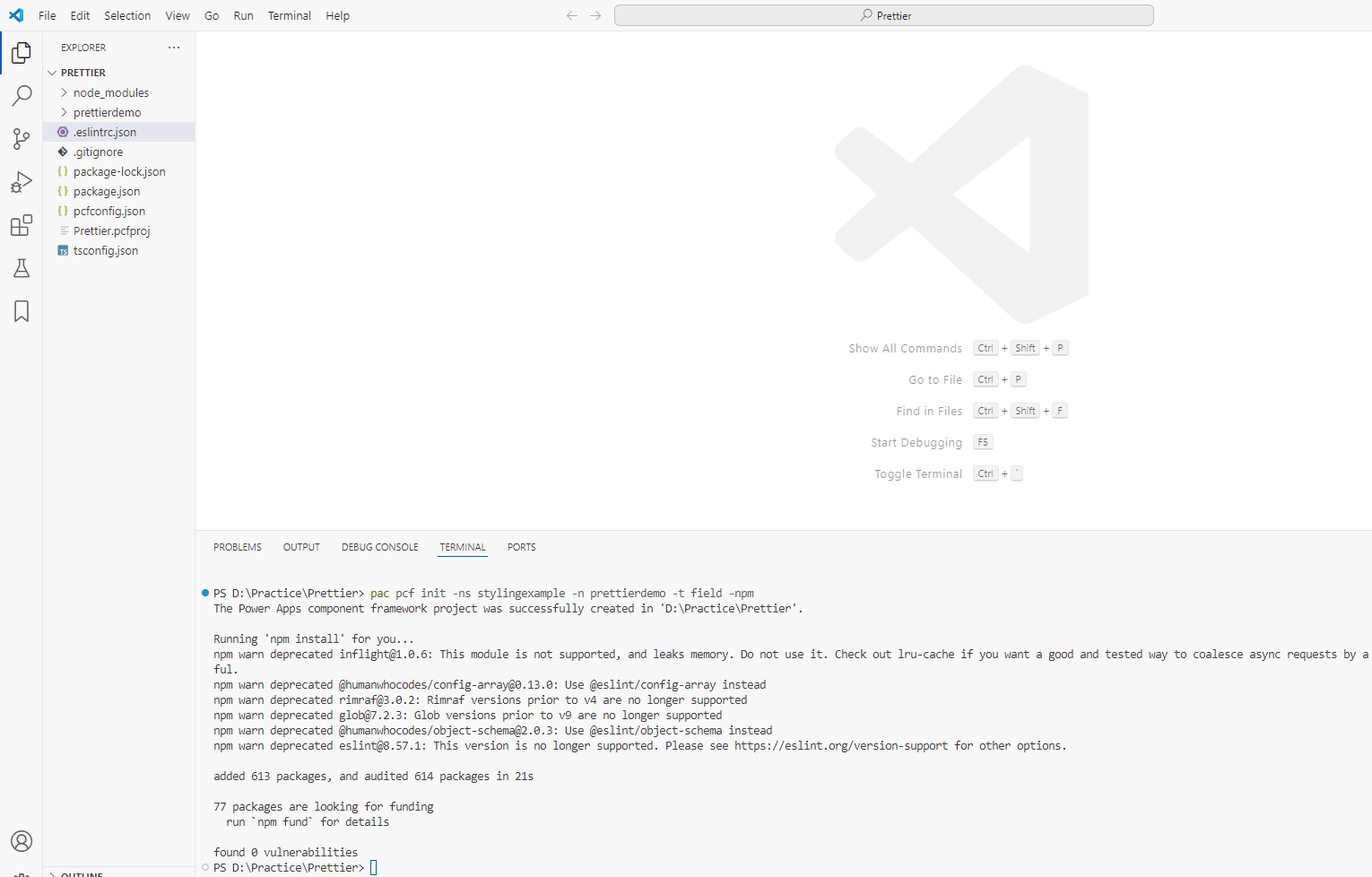 Create a PCF project and integrate Prettier: