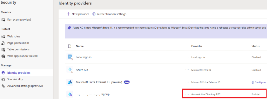 We have our Power Pages website configured with Azure AD B2C as Identity Provider.