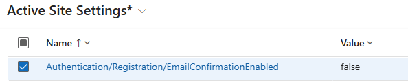 - Authentication/Registration/EmailConfirmationEnabled – false