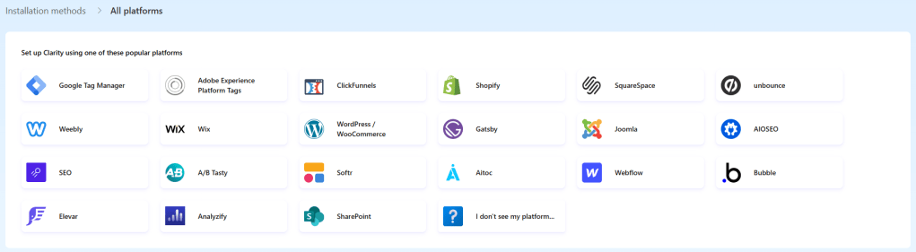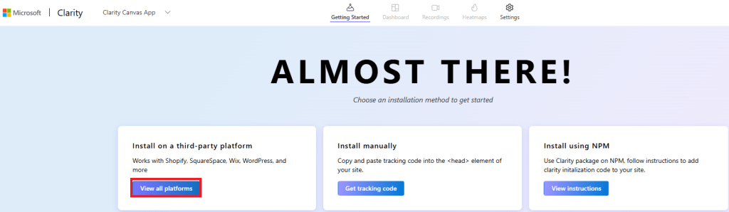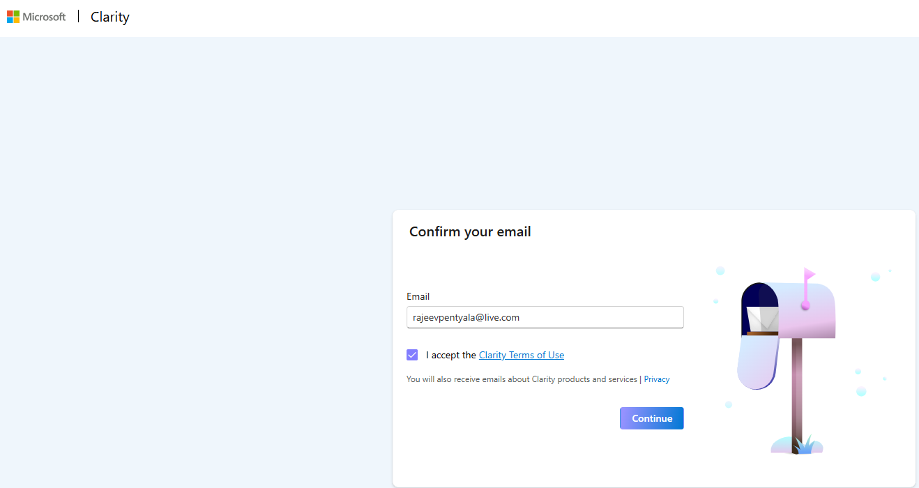 - Navigate to https://clarity.microsoft.com/ and click on Get Started > Sign in to Microsoft