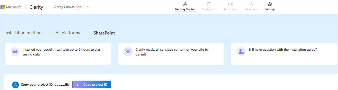- ClarityProjectId [Required]: The ID of the Clarity project we copied previously.