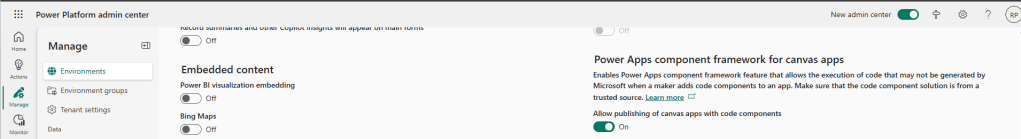 - On your Power Platform Environment, Enable the Power Apps component framework feature by following steps mentioned here