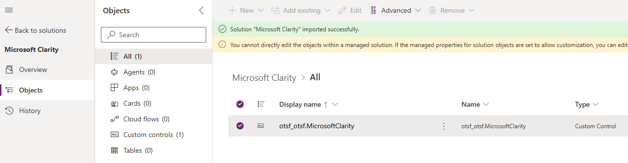 - After successfully importing the solution, open it and you’ll notice a custom control included.