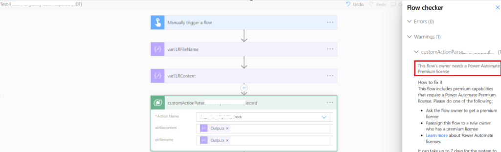 “The flow’s owner needs a Power Automate premium license.”