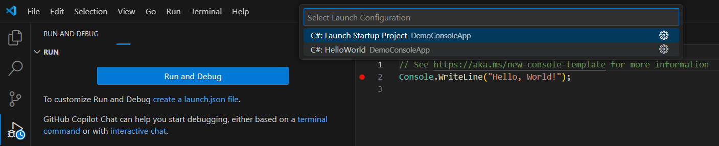 - Alternately, you can trigger dotnet run command from console to run the project without Debugging.