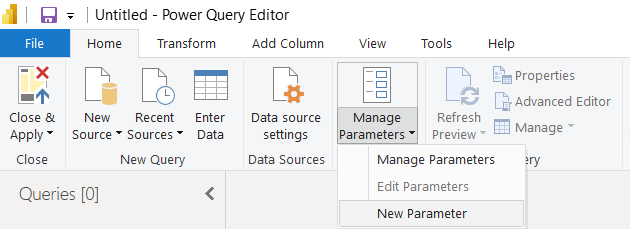 - Create a new parameter, go to Manage Parameters > New Parameter.