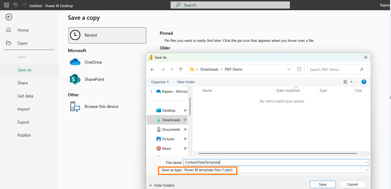 To achieve this, we’ll use a Power BI Template file (.PBIT) file.
