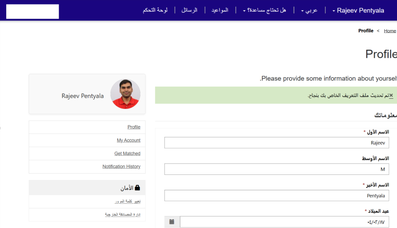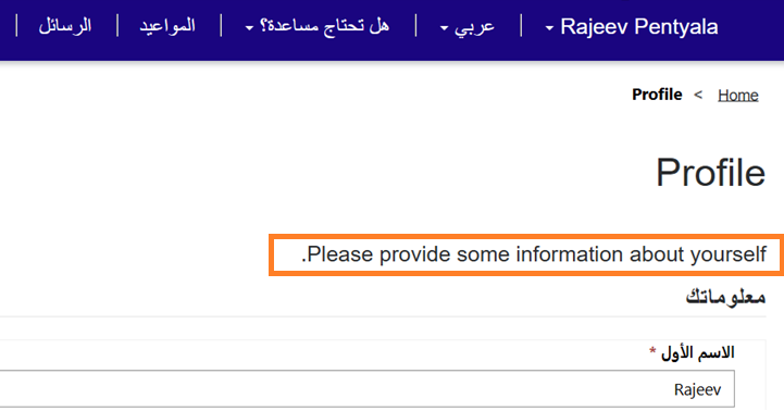 - Go to your Profile page and change the Preferred Language to Arabic.