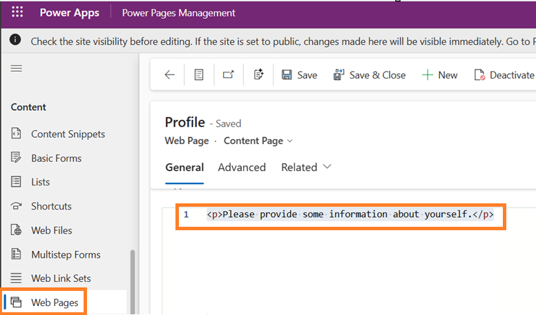 - Open the Power Pages Management Model Driven App.