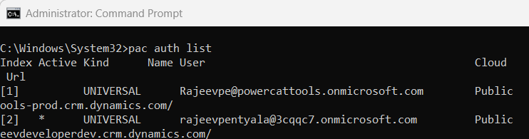 - Make sure you’re connected to the correct environment. If needed, use: pac auth create command.