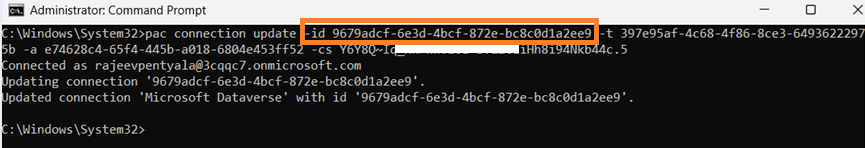 pac connection update -id <connection-guid> -t <tenant-id> -a <application-id> -cs <secret>
