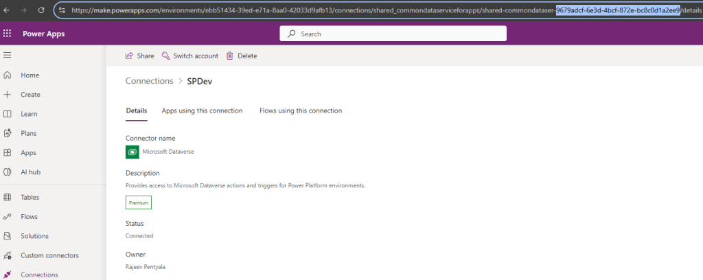 When you open the Connection Reference you notice its associated with connection SPDev.