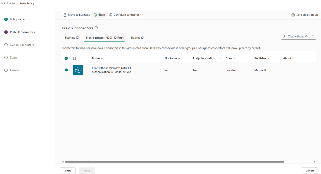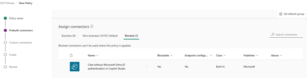 - Chat without Microsoft Entra ID authentication in Copilot Studio connector will be now shown under Blocked