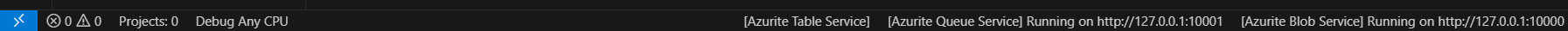 - Once started you will see the [Azure Queue Service] Running on http://127.0.0.1:10000 message in VS Code footer as shown below.