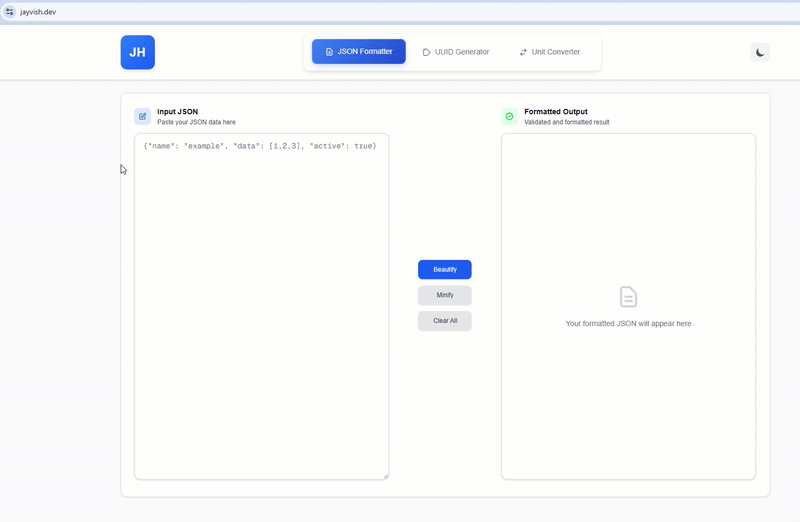 I’m excited to introduce JayVish.dev, a hobby project where I’ve started building, simple, and useful online tools.