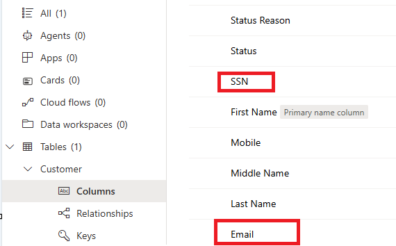 - I have a custom table ‘Customer’ with columns Email and SSN.