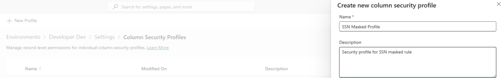 - Select an existing profile, or select New Profile, enter a name, enter a description, and then select Save.