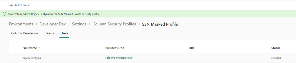 By default, users will only see the masked value of a field. Now, let’s look at how to grant permission to read the actual value of a masked field.