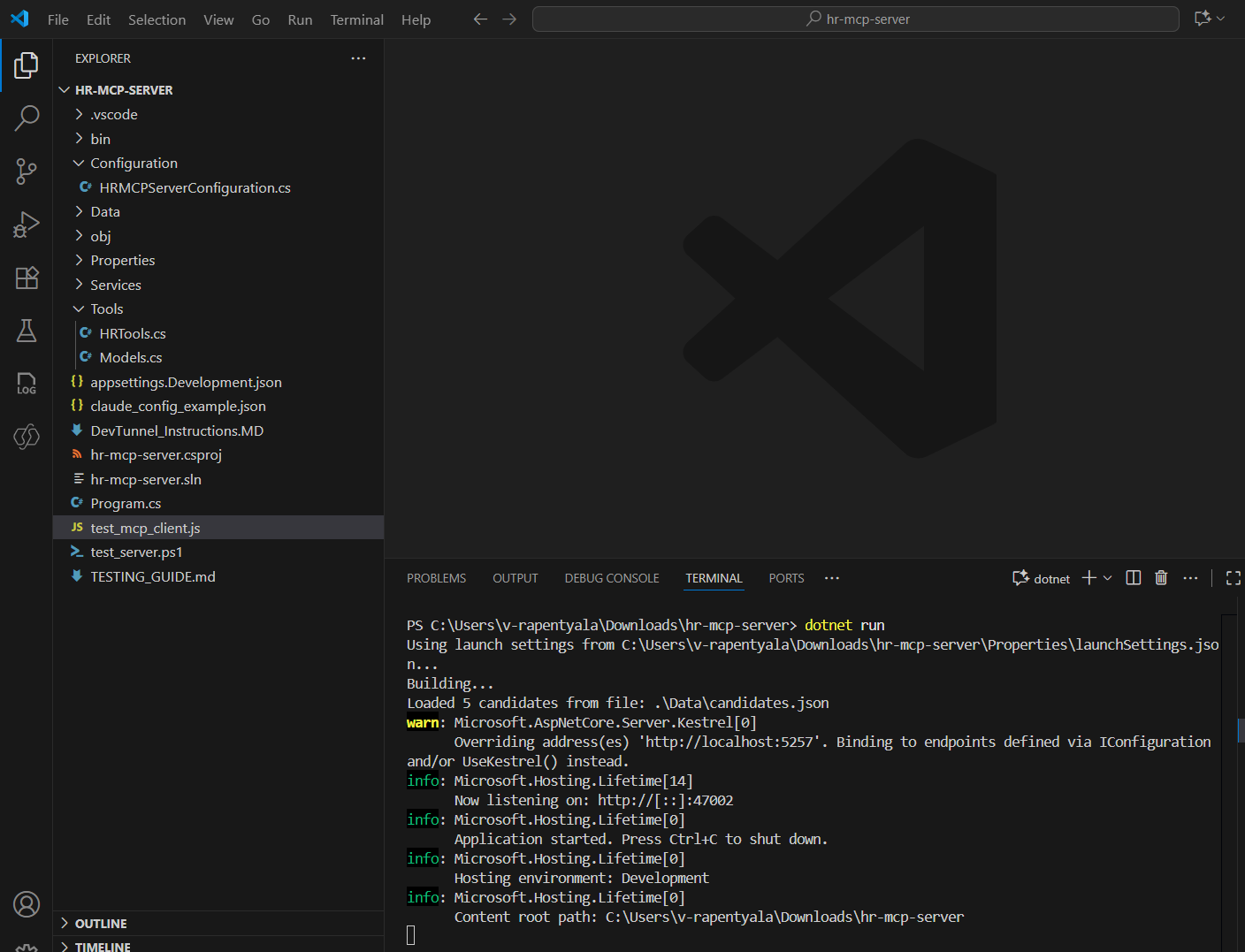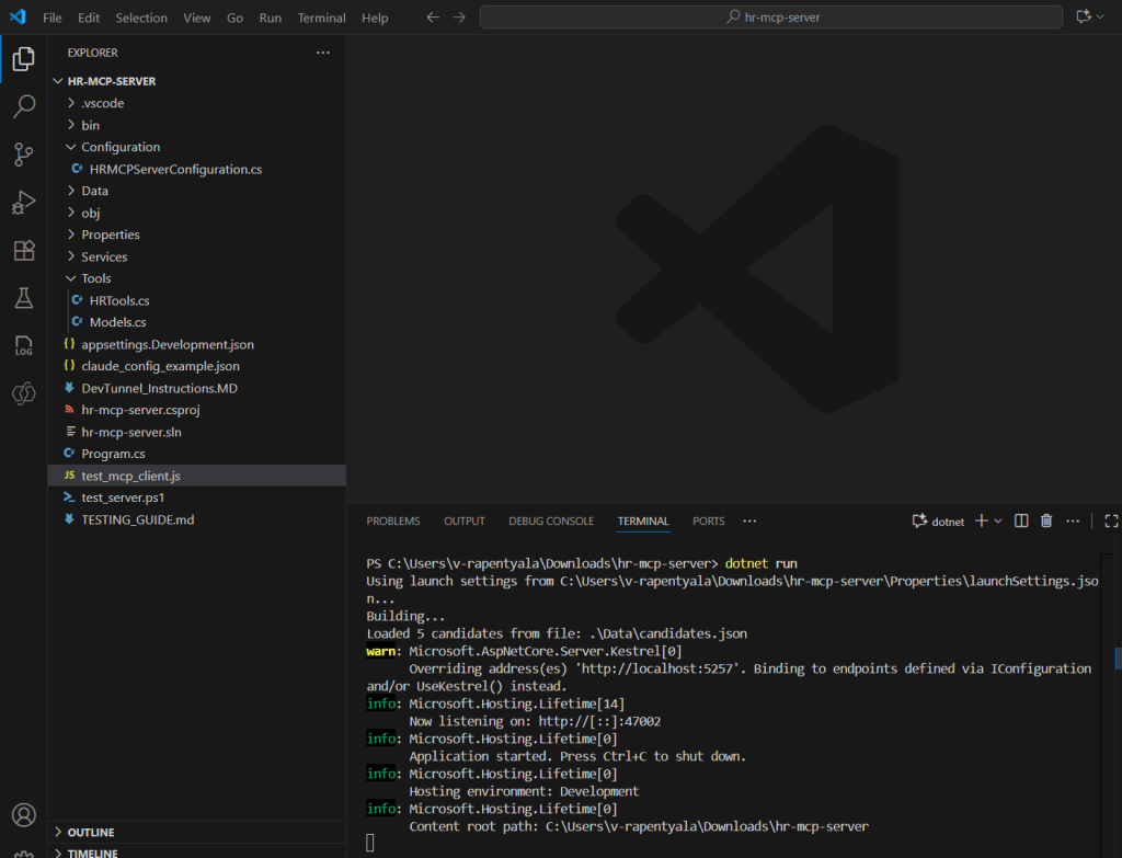 We won’t be building a new MCP Server project from scratch. Instead, we’ll use the pre-built HR MCP Server project provided in the Copilot Developer Camp.