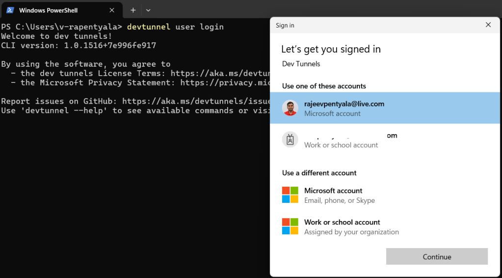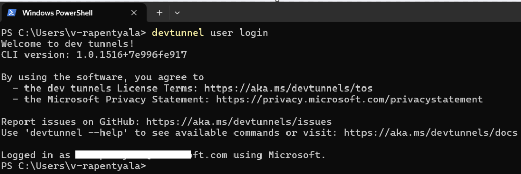 devtunnel user login