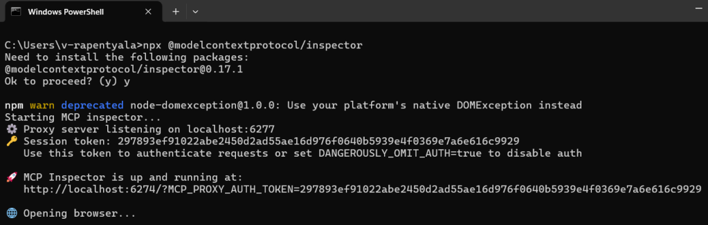 - We will be using the MCP Inspector to test the tools. To use the MCP Inspector, open PowerShell console and run the following command: