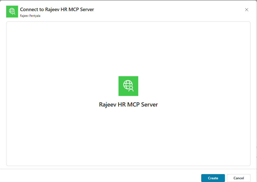- Replace the rajeev-hr-mcp name suggested below with whatever name you like,