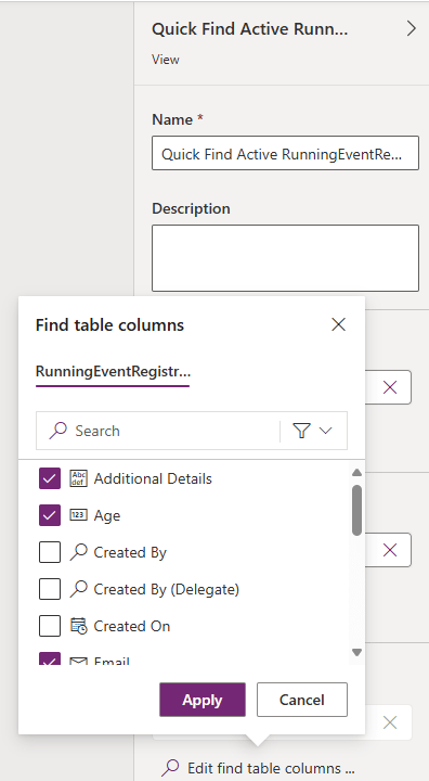 - Let’s say you want your agent to answer questions like “How many participants are under 25 years old?” or “How many are beginner runners?” To make this possible, you need to enable search on the relevant columns in your table.