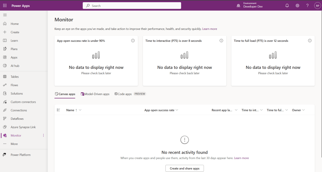 Using Monitor in Power Apps Maker Portal: