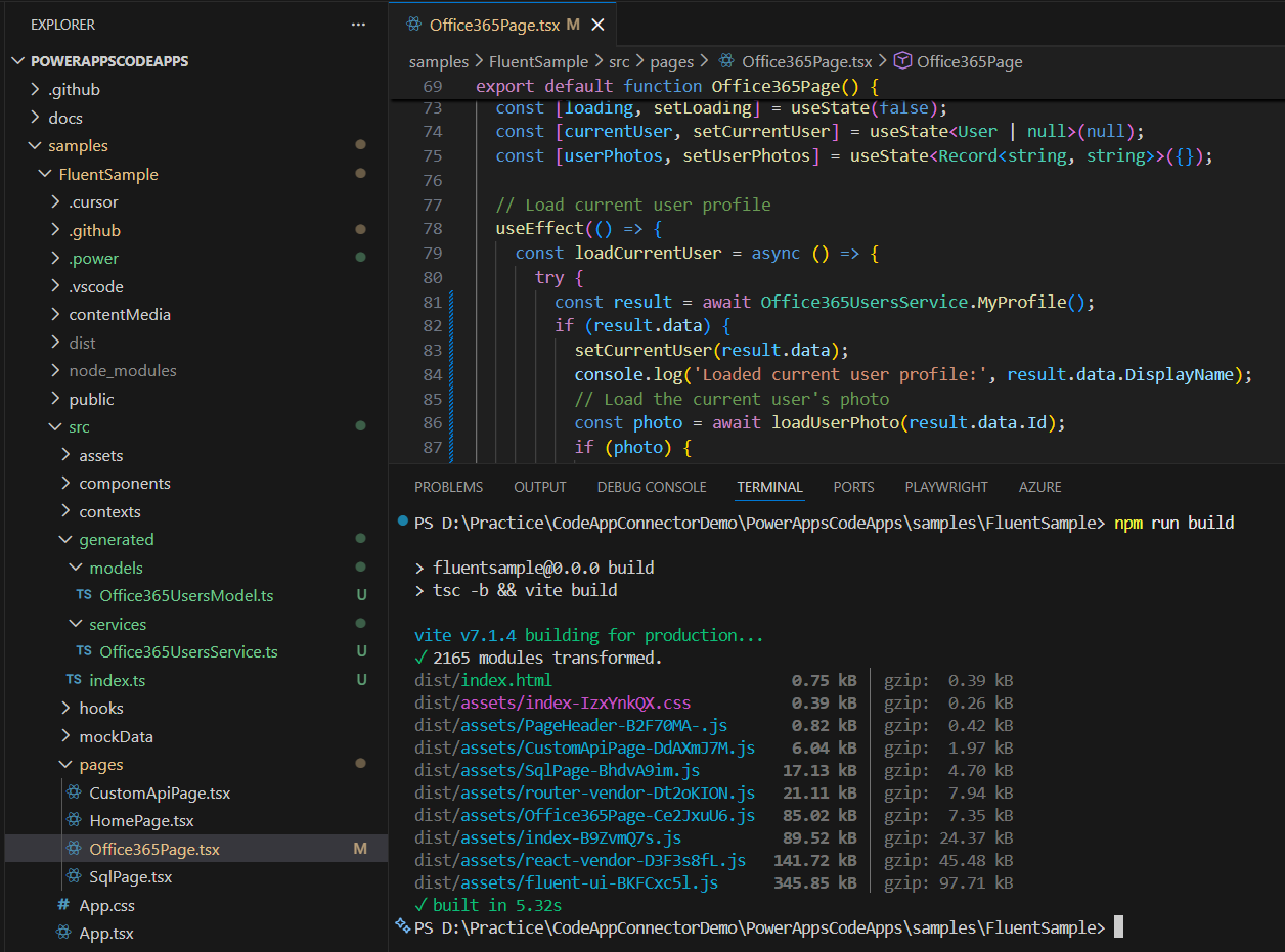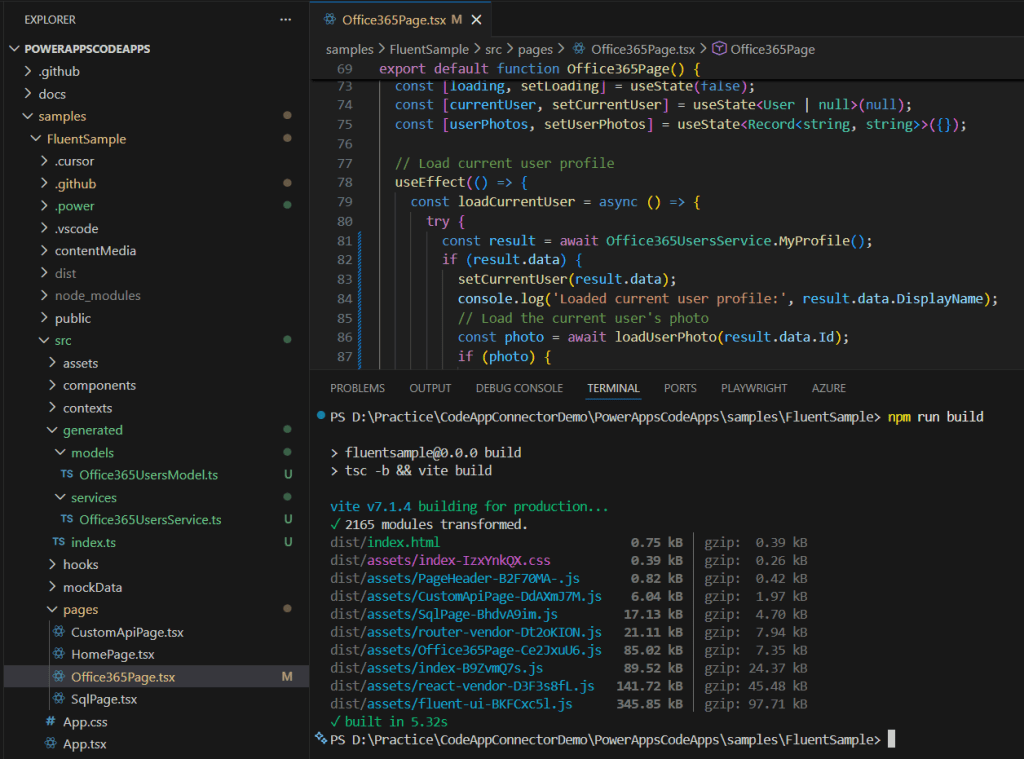 At this point, we’ve successfully replaced the mock data in Office365Page.tsx with real user data and built the project.