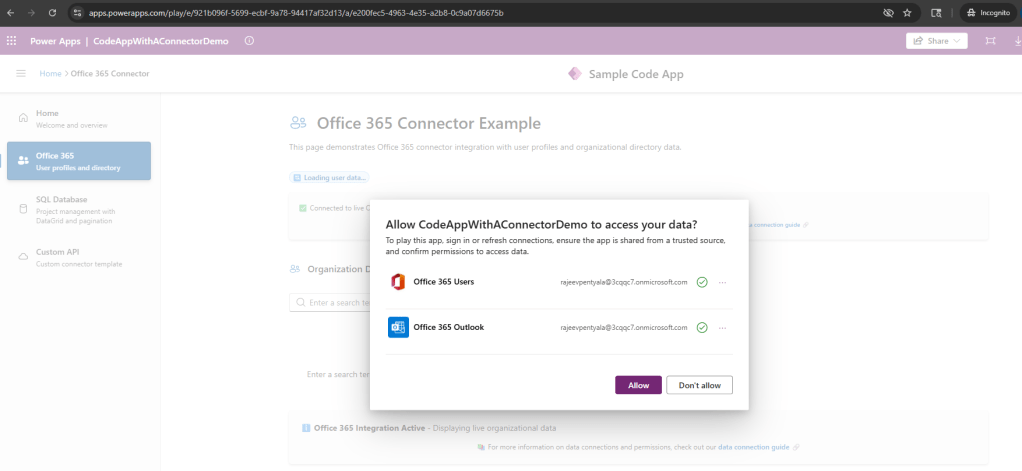 - The app will prompt you to allow the connectors. Click Allow to grant the necessary permissions.