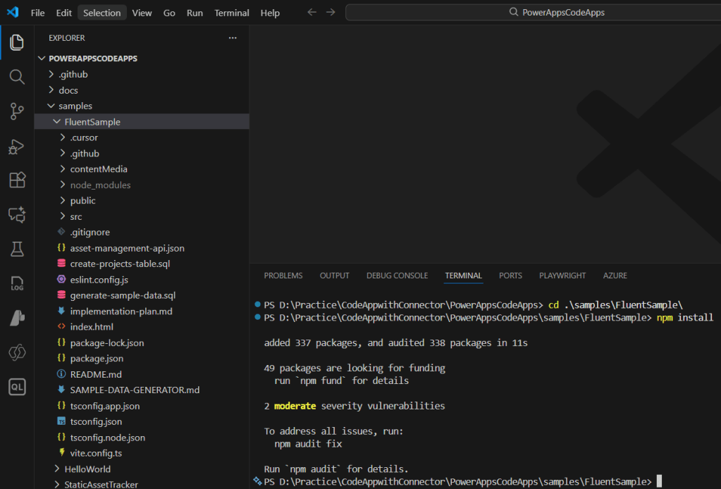 - In the VS Code navigate to the samples/FluentSample folder.