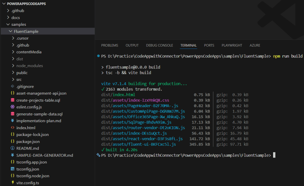 As mentioned earlier, I’ll be using the Fluent Sample project from Code Apps Samples.