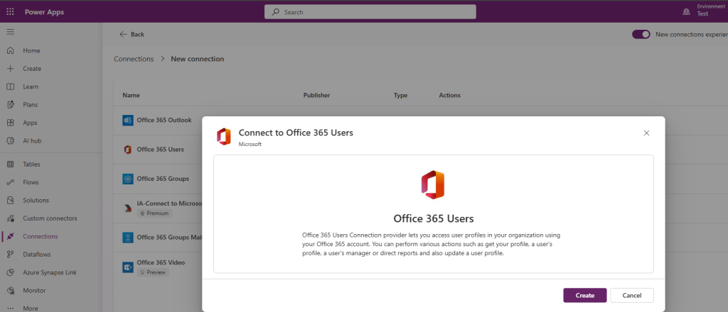 Create Office 365 Connections: